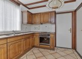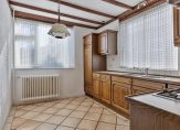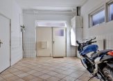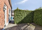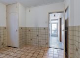 De naastgelegen bijkeuken, eveneens met verwarming, is klaar voor een nieuwe invulling. Hier zijn twee inbouwkasten en er hangt een wastafel, naast de deur van de garage.
