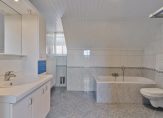 Naast de derde slaapkamer is de badkamer die, net als de slaapkamers, een ruime opzet heeft. De ruimte is ingedeeld met een ligbad, aparte douche, wandcloset en een wastafelmeubel.