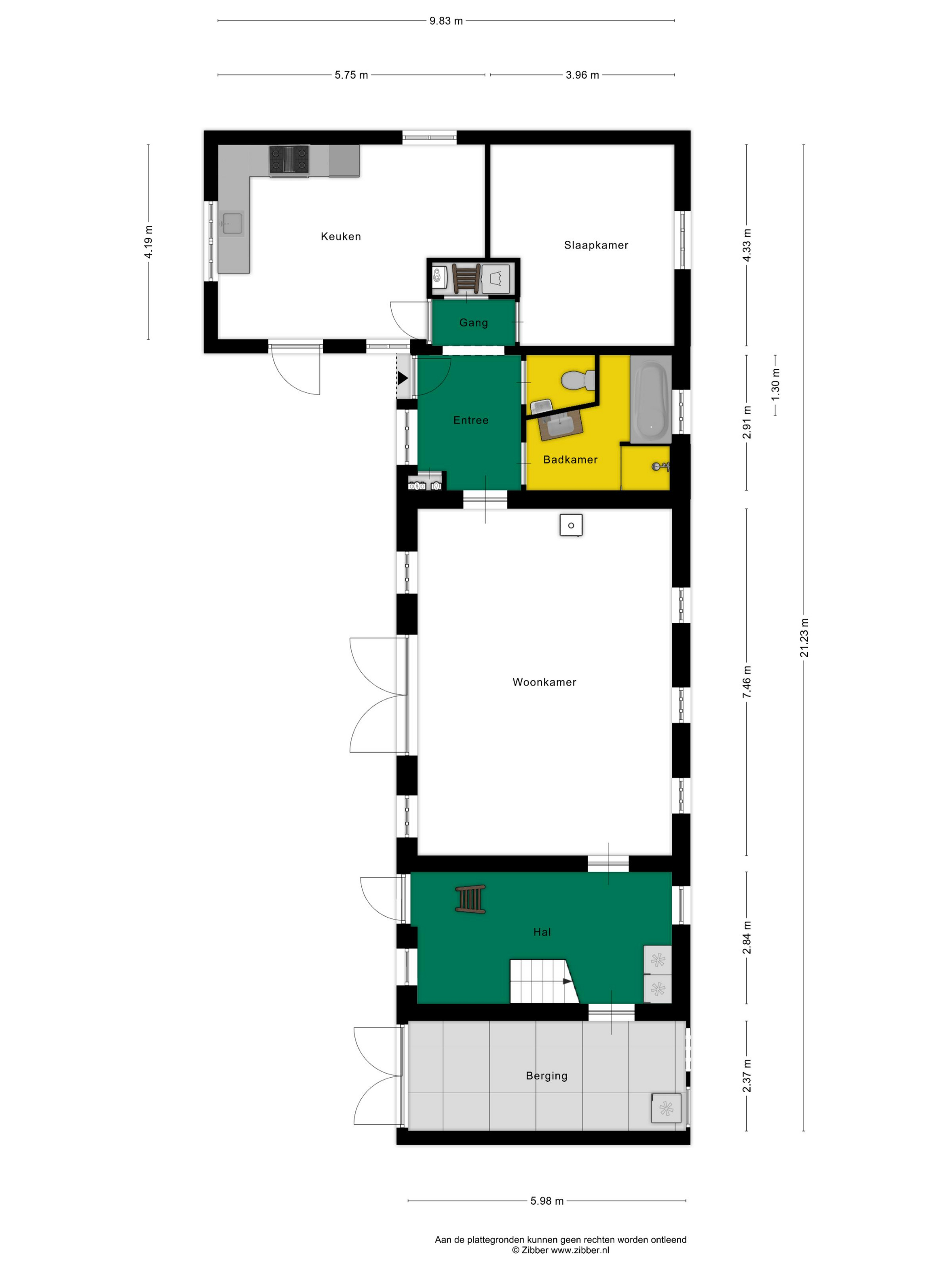 – Slaap-/werkkamer en badkamer op de begane grond