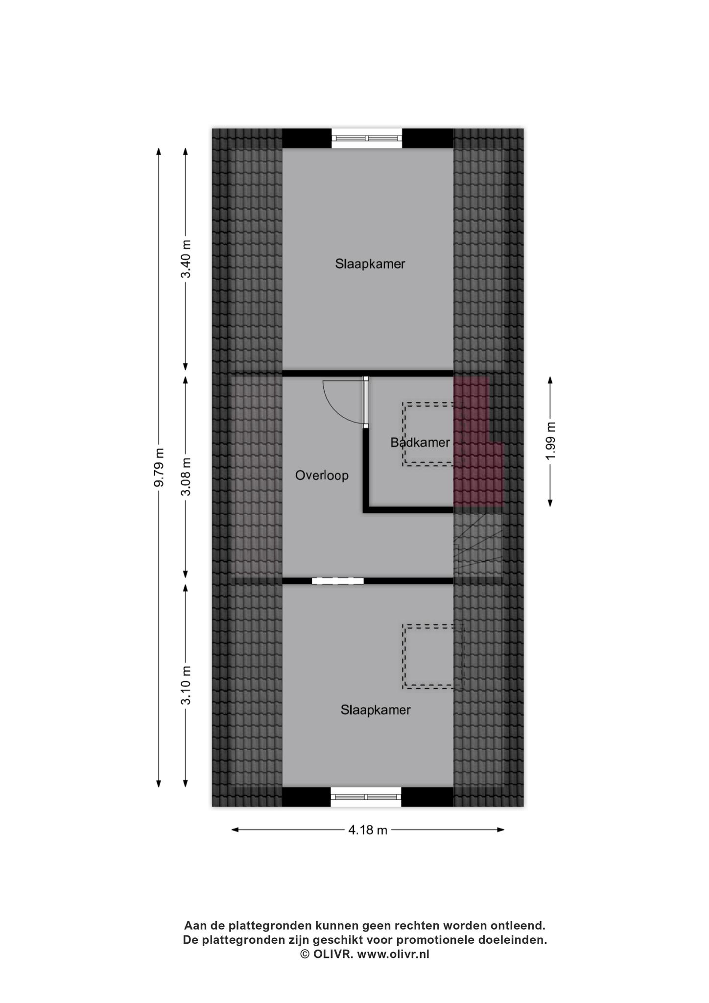 Verdieping: overloop met mogelijkheid voor een werkhoek/bureau; 2 sfeervolle slaapkamers; badkamer (casco).