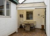 De diepe achtertuin is een fijne buitenruimte voor de tuin- en dierenliefhebber. Komen er kinderen in dit mooie huis te wonen, dan hebben ze volop ruimte om te spelen. Aan de woning is een overdekt terras gemaakt en achter in de tuin zie je een grote kippenren met nachtverblijf.