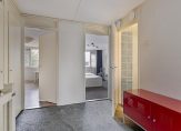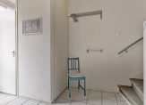 Voordat je naar de voordeur loopt, kijk eerst naar het vele groen aan de voor- en linkerzijde. Achter de blauwe voordeur is de lichte hal, met de trapopgang en een handige bergkast. Aan de linkerzijde, naast de meterkast, is de toiletruimte met fonteintje.
