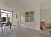 De Z-vormige woonkamer is niet alleen heel ruim, maar ook heerlijk licht. Het zitgedeelte is aan de voorzijde, met uitzicht naar het groen, en bij het eetgedeelte zorgt een pui met openslaande deuren voor een uitstekende verbinding met de tuin. De ochtendzon valt aan de voorzijde naar binnen en bij het eetgedeelte geniet je van de late middag- en avondzon.