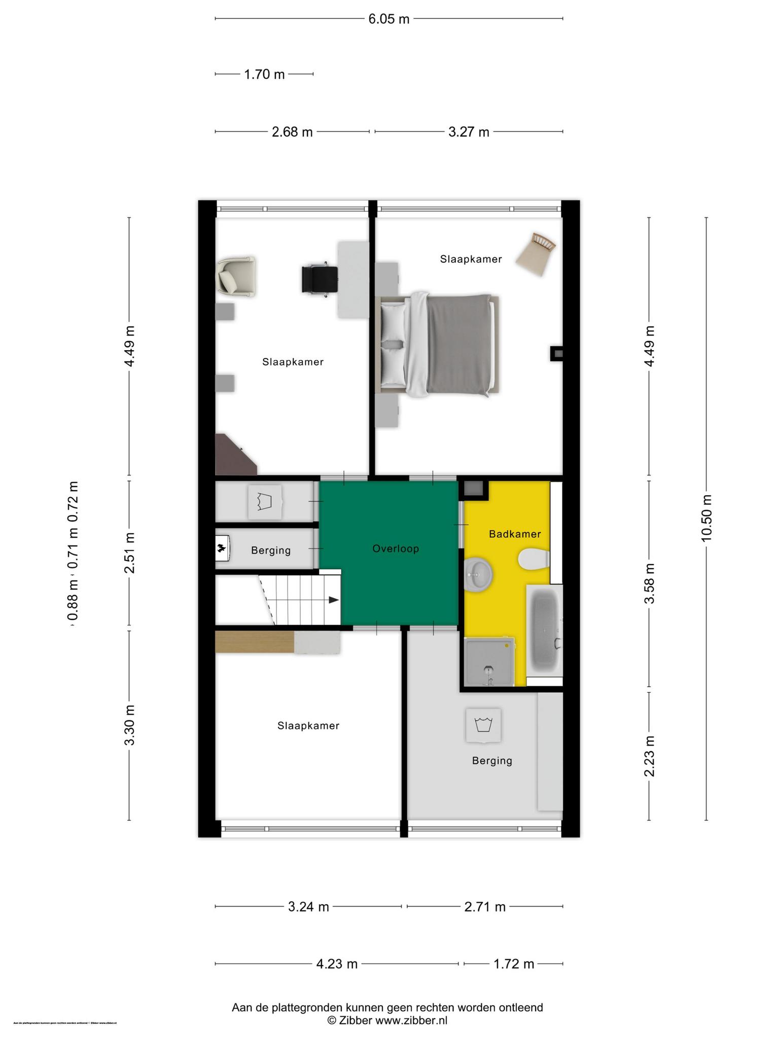 Verder zijn er nog drie ruimtes op deze verdieping; de badkamer, een berging/cv-ruimte en de wasruimte. Op de foto’s zie je dat de droger in een van de slaapkamers staat, maar qua ruimte kan deze ook in de wasruimte staan.