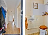 Ook de toiletruimte met fonteintje en de badkamer zijn vanuit de hal te bereiken. In de badkamer zijn de originele granitovloer en wandtegels behouden. De ruimte is ingedeeld met een douche en wastafel. Met een andere indeling is het mogelijk om een ligbad te plaatsen.