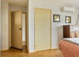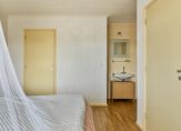 Dit appartement heeft maar liefst drie slaapkamers, waarvan twee aan het balkon grenzen. Een van deze kamers heeft een handige, diepe inbouwkast en de slaapkamer aan de galerijzijde heeft twee inbouwkasten, airconditioning en een wastafel. In deze slaapkamer ligt laminaat en in de andere kamers is de vloer afgewerkt met vinyl.