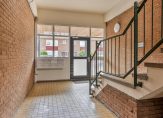Tussen de kapsalon en Buurtzorg is de centrale entree met de brievenbussen, intercom en het bellentableau aan de buitenzijde. Op de begane grond zijn twee privébergingen van totaal ca. 9.1 m2. Een brede trap leidt naar de overdekte galerij op de eerste verdieping, waar de voordeur van het appartement is. Op de galerij is het mogelijk om een stoel neer te zetten, waar je heerlijk in de ochtendzon kan zitten.