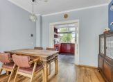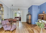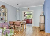 De tuingerichte woon-/eetkamer is een sfeervolle leefruimte, met een bergkast onder de trap en mooi uitzicht naar de tuin. Het vele groen zorgt voor optimale privacy en de situering op het zuidwesten zorgt voor veel lichtinval.