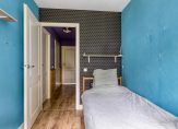 Op de overloop, naast de trap, is een handige inbouwkast en achter een van de deuren is een vaste trap naar de tweede verdieping. Verder zijn er drie ruime slaapkamers op deze verdieping, waarvan twee aan de achterzijde. De master bedroom, over de hele breedte van de woning, is aan de voorzijde.