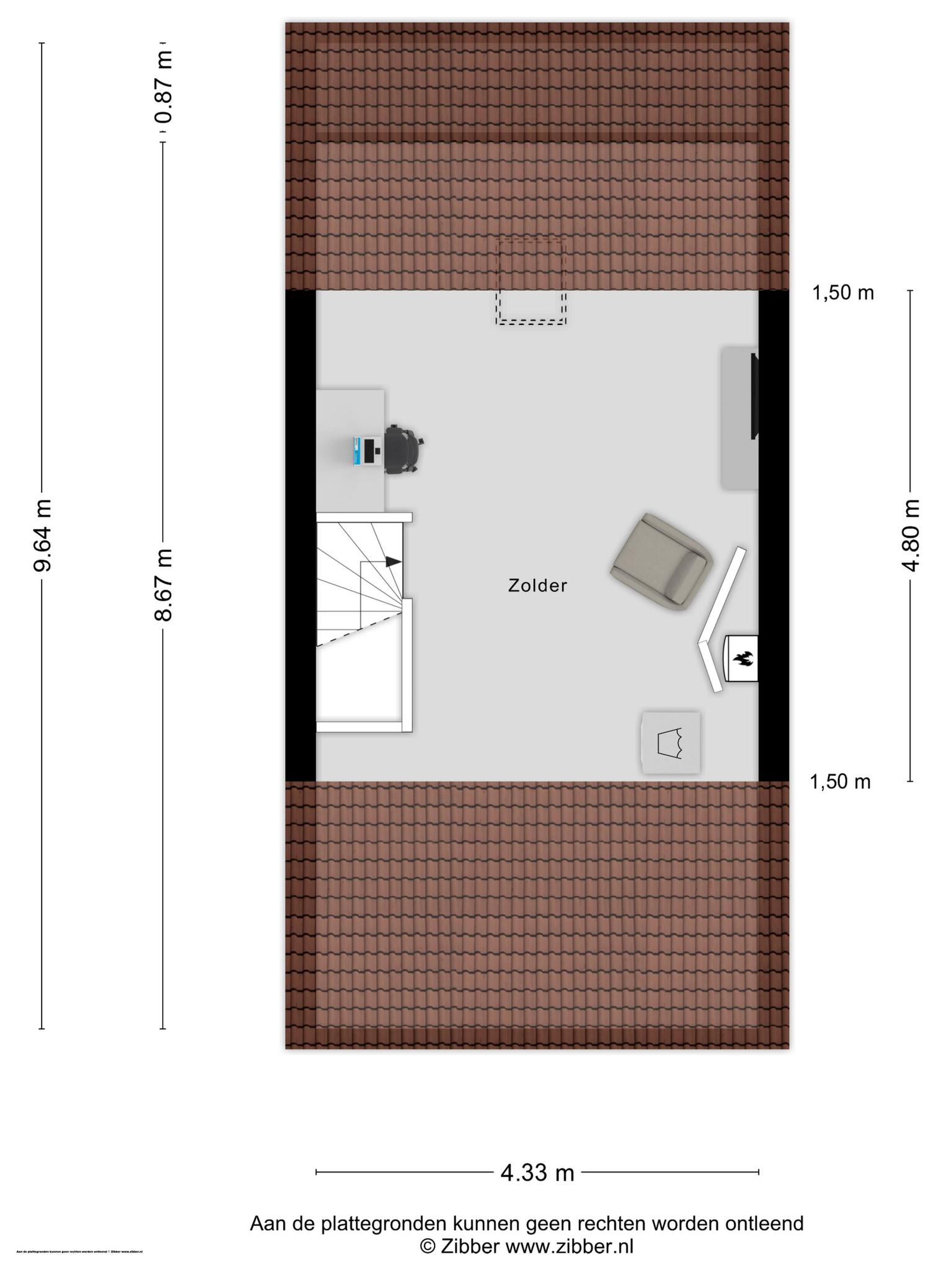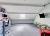 De zolderkamer, met een dakraam en een hoge nok, is klaar voor een nieuwe invulling. Wordt dit de vierde slaapkamer, een fantastische werkkamer, hobbyruimte of een combinatie van invullingen?