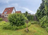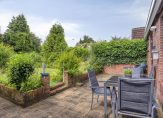 Ook in de achtertuin wordt de sfeer bepaald door mooie beplanting, met kleurrijke bloemen rondom het gazon. Al dit moois is goed te bewonderen vanaf het grote, zonnige terras waar veel privacy is.