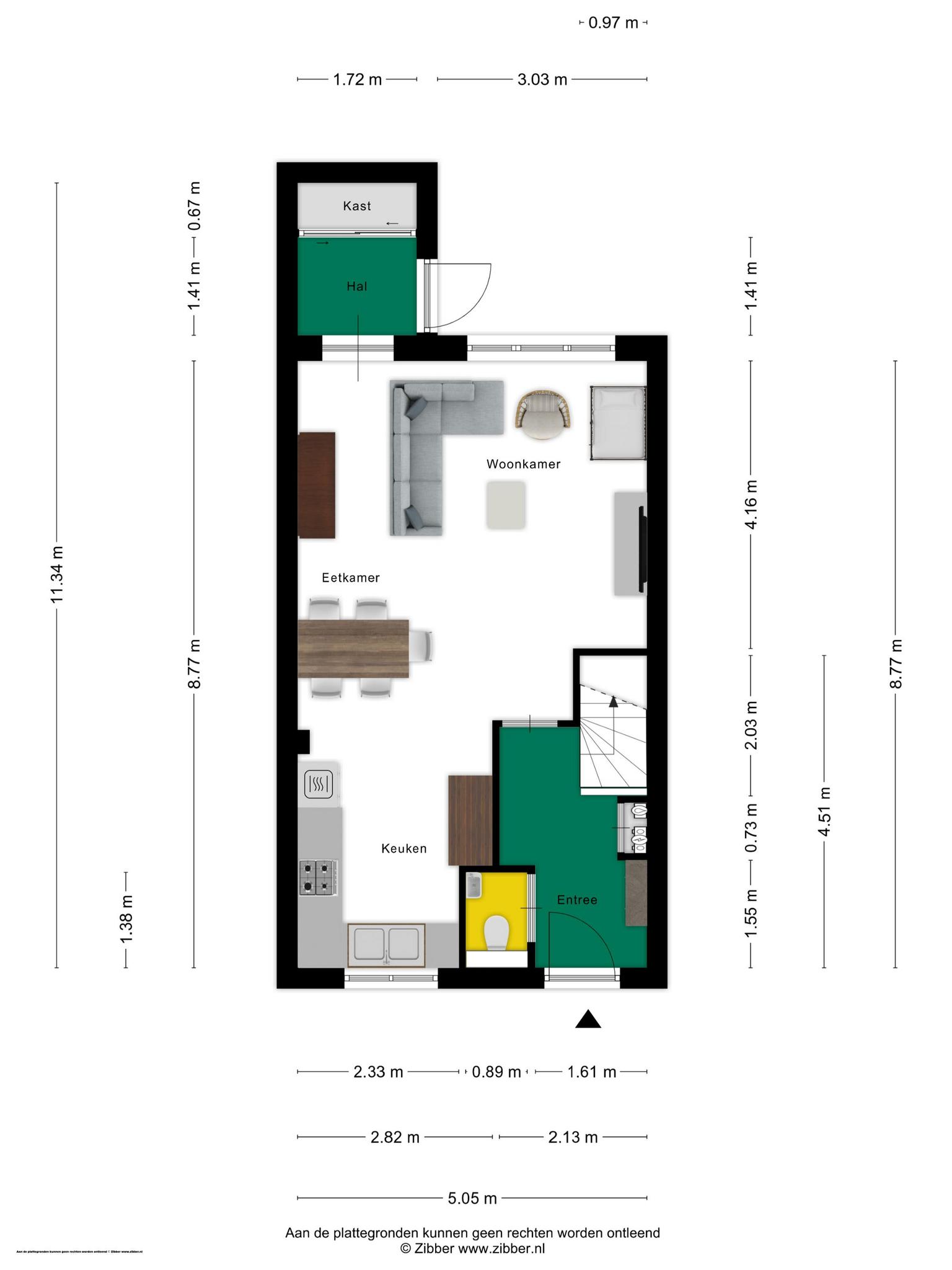 De sfeervolle woonkamer is goed in te delen met een hoekbank, tv-meubel, eettafel en een grote kast. En komt er een jong gezin wonen, ook voor een box en andere babyspullen is plek in deze woonkamer. Aan de achterzijde is een portaal, die toegang biedt tot de tuin.