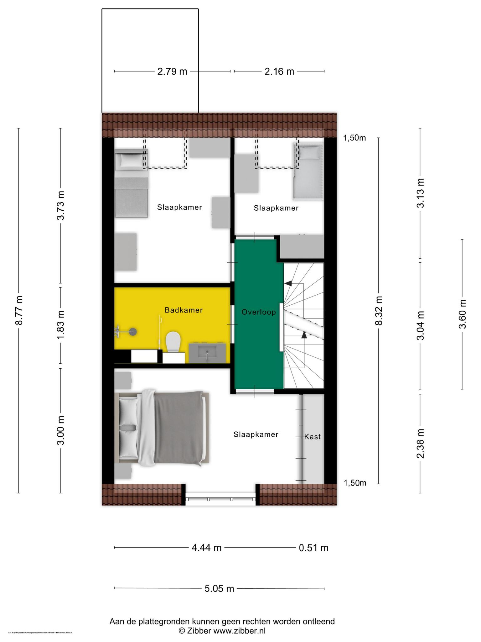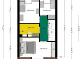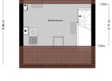 Een vaste trap geeft toegang tot de zolderkamer, met een dakraam en een hoge nok. Bij de verwarmingsinstallatie is de opstelling van de HR-ketel. De rest van deze kamer is nu als berging in gebruik.