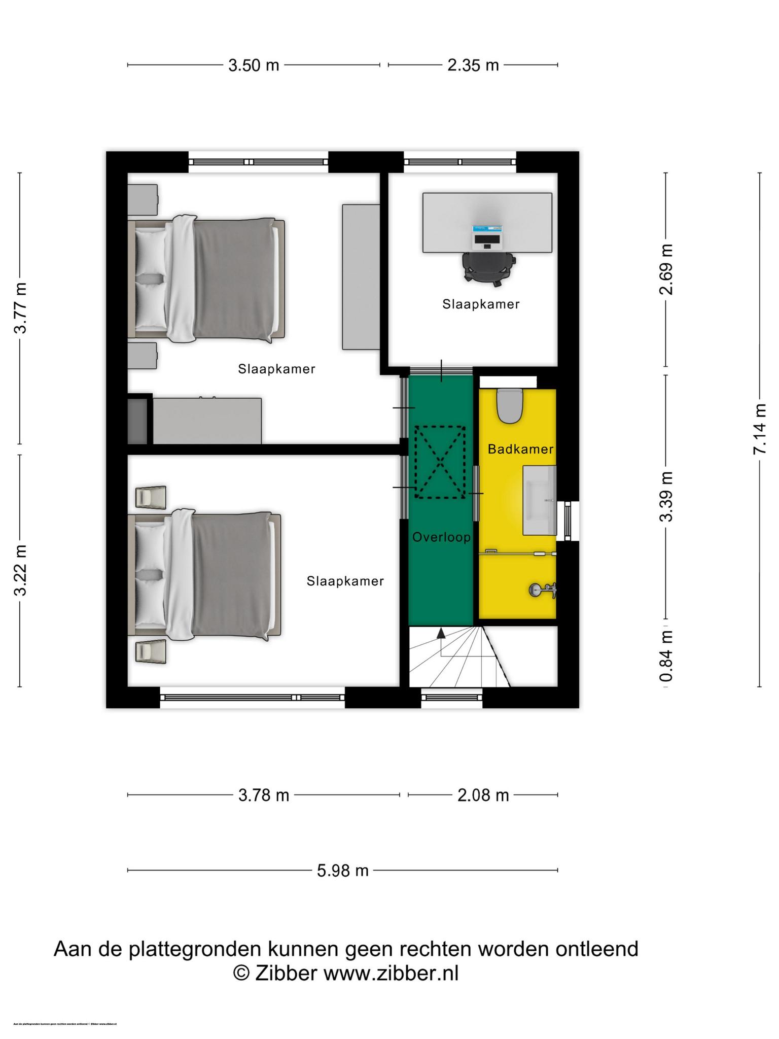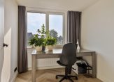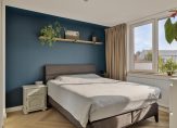 Aan de overloop grenzen drie slaapkamers, waarvan twee groot genoeg zijn om in te richten met een tweepersoonsbed. De derde slaapkamer is een prima werkkamer, hobbyruimte of kinderkamer. Ook op deze verdieping zie je stucwerk, inbouwverlichting en een visgraat pvc-vloer.