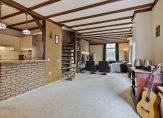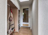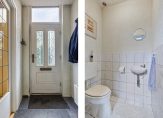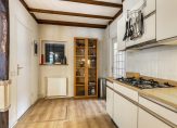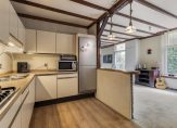 In de halfopen keuken staat een lichte hoekopstelling met een dubbele spoelbak, een ingebouwde gaskookplaat en een koelkast. Overige apparatuur kan los worden geplaatst, of kies je toch voor een volledig nieuwe keuken met inbouwapparatuur? Achter de deur met glas in loodraam is de verwarmde bijkeuken met de aansluitingen voor de wasmachine, droger en vaatwasser. De inpandig te bereiken garage, met een grote sectionaalpoort, heeft een oppervlakte van circa 29 m2.