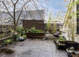 De grootste buitenruimte is het dakterras, te bereiken vanuit een van de slaapkamers. Deze bevindt zich merendeels boven de garage en is gesitueerd op het westen. Op de begane grond is een ommuurde tuin, die vanuit de bijkeuken bereikbaar is.