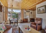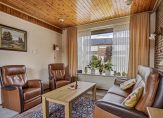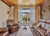 Doordat de keuken naar de aanbouw is verplaatst is de woonkamer een stuk groter worden. Grote ramen aan de voor- en achterzijde zorgen voor veel lichtinval en mooi uitzicht naar de tuin.