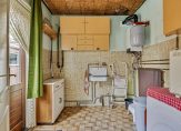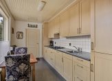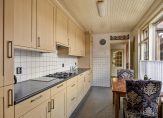 De meer dan 4.50 meter lange keuken, met een groot raam aan de tuinzijde, biedt ruimte om een ontbijttafel neer te zetten. De lange wandopstelling biedt veel bergruimte en de gaskookplaat, afzuigkap, vaatwasser en koel-/vriescombinatie zijn ingebouwd. In de aansluitende, verwarmde bijkeuken hangen de HR-ketel en een uitstortgootsteen. Ook de wasmachine, en eventueel een droger, kunnen hier staan.