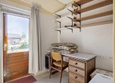 De badkamer, met de originele wandtegels en een granitovloer, is ingedeeld met een ruime douche en een wastafel. Het vergroten van de badkamer is mogelijk, richting de inbouwkast van de naastgelegen slaapkamer.