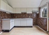 Vanuit de woonkamer is de dichte, ruime keuken te bereiken. Ook vanuit hier is het terras in de tuin te bereiken, waar je kunt eten en borrelen. De keukenopstelling in L-vorm is in 1977 geplaatst en toe aan vernieuwing. Erg handig is de inpandige toegang tot de verlengde, bijna 10 meter lange garage met elektra, verwarming en water.