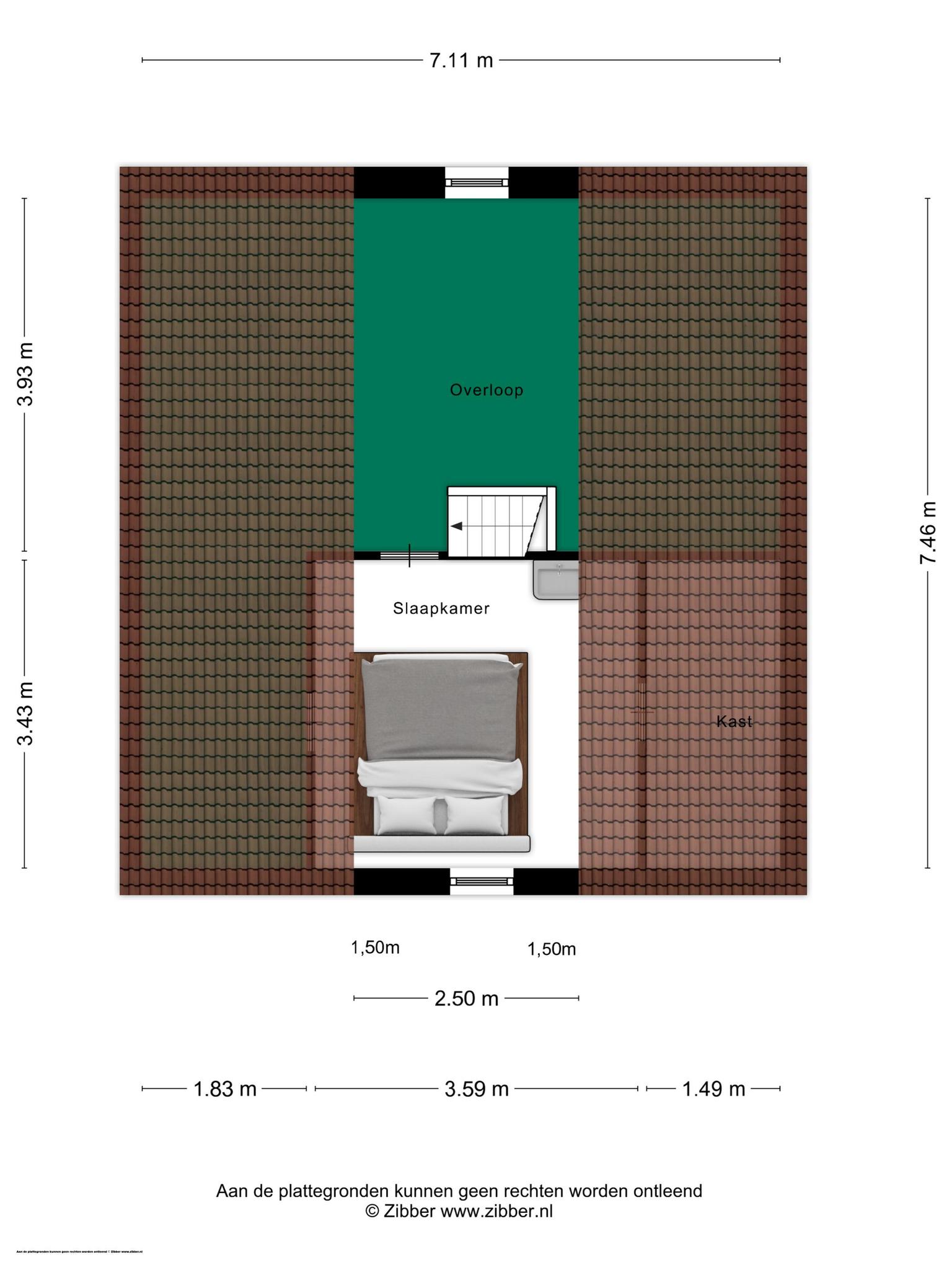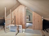 Boven de keuken en het voorste deel van de garage is een bergzolder (met dakraam) die vanuit de garage bereikbaar is.