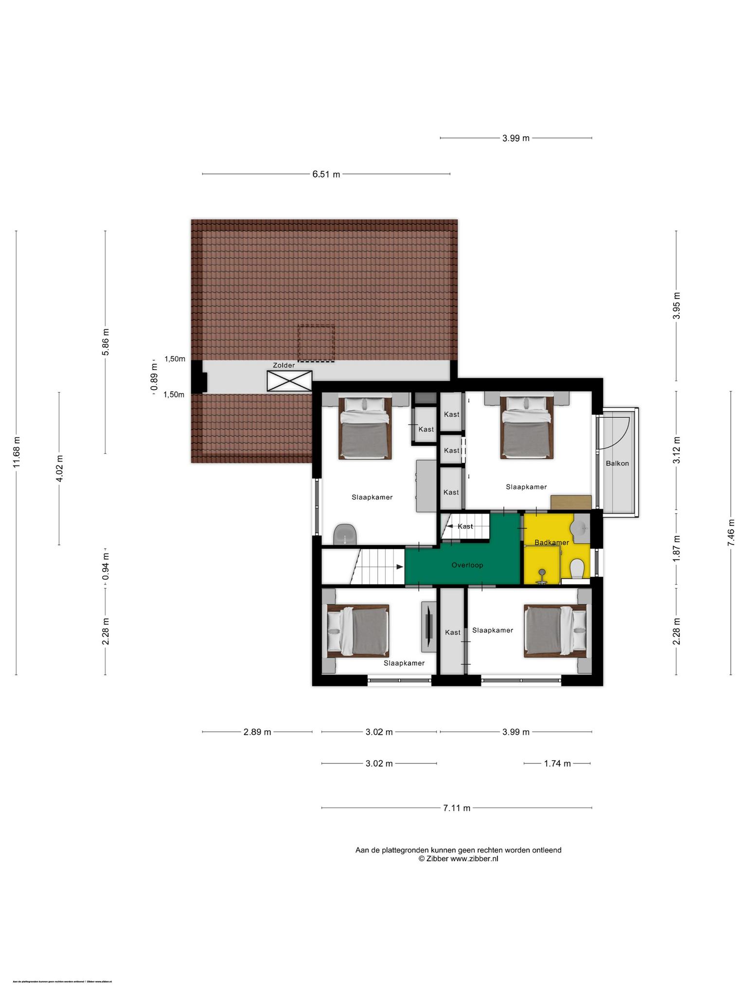 De eerste verdieping heeft de perfecte indeling voor een gezin, met vier slaapkamers en een badkamer. Er zijn twee slaapkamers aan de voorzijde, beiden met een grote inbouwkast. In de kamer aan de linker achterzijde zie je een inbouwkast en een wastafel, terwijl de hoofdslaapkamer een vaste kastenwand en een balkon heeft.