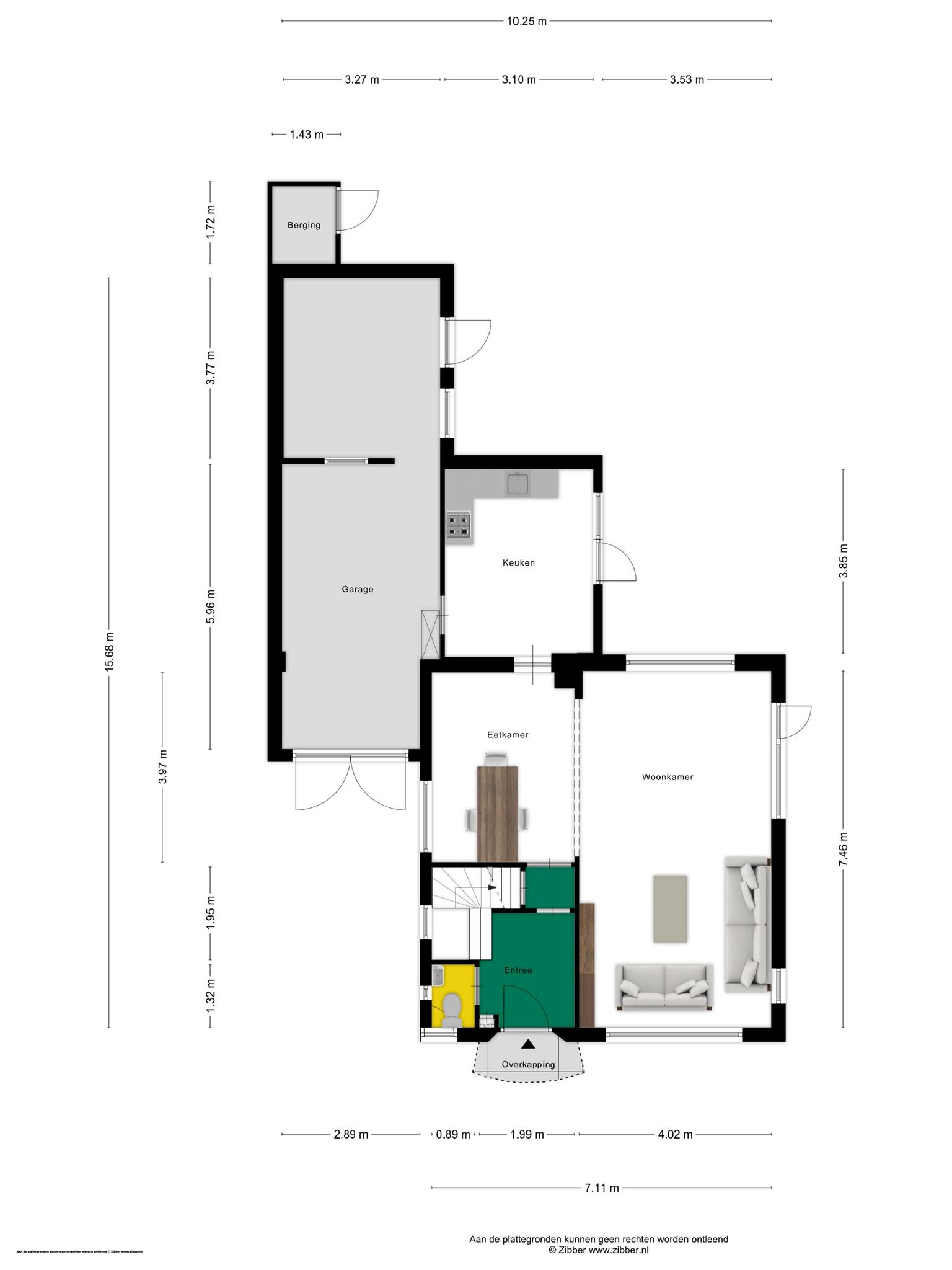 – Ruime garage/hobbyruimte, inpandig te bereiken vanuit de woning; Daarachter ligt nog een kleine afsluitbare berging voor tuingereedschap.