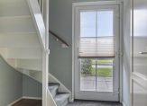Via de eigen oprit met plek voor meerdere auto’s bereik je de entree. In de hal bevindt zich de trapopgang, toiletruimte en een praktische berging/wasruimte. De hal leidt naar een sfeervolle, lichte woonkamer met prachtig uitzicht op de tuin. Dankzij de uitstekende isolatie is het binnen in de zomer aangenaam koel en in de winter heerlijk behaaglijk. De houten vloer en warme inrichting geven het geheel een huiselijk karakter.