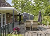 Rondom de woning ligt een fraai aangelegde tuin met zonnige borders en een zeer ruim, deels overdekt terras. Perfect om buiten te eten, te loungen of te genieten van de natuur. In de afsluitbare schuur is plek voor meerdere fietsen. Het perceel is volledig privé en biedt een oase van rust, ondanks de nabijheid van het park.